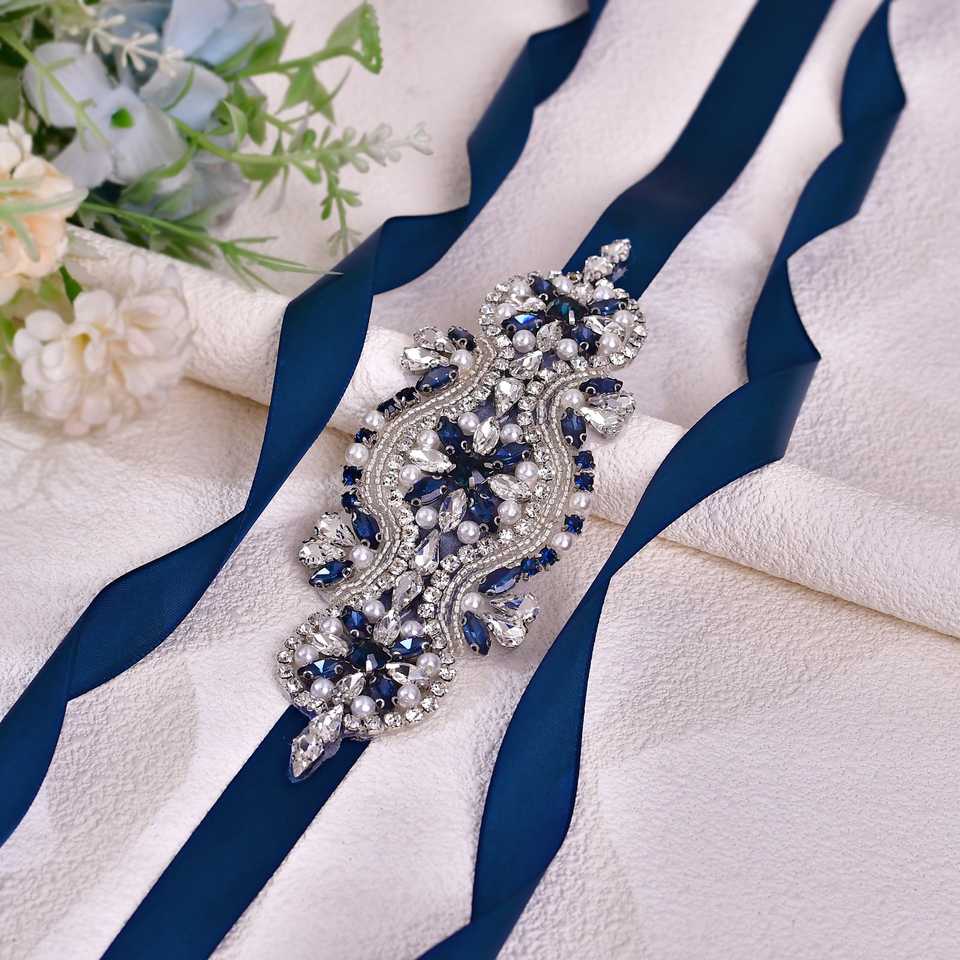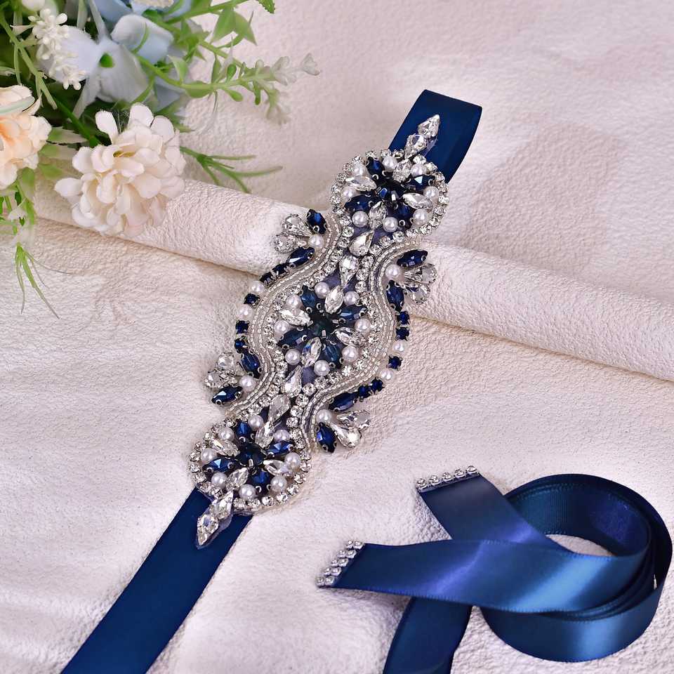 Bridella BS05ML-2 Navy Rhinestone & Pearl Adjustable Fit Wedding Belt Elegant Bridal Accessory