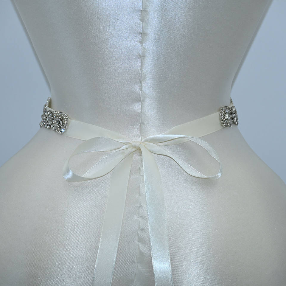 Bridella BS106 Ivory Rhinestone Adjustable Fit Wedding Belt for Formal Events