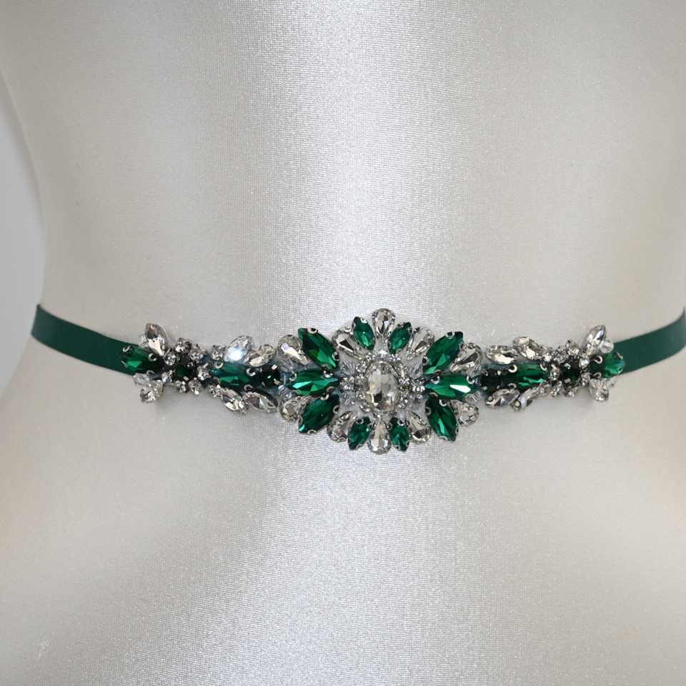 Bridella BS142KL Wedding Belt Green with Rhinestone Embellishment Adjustable Fit for Proms & Formal Events