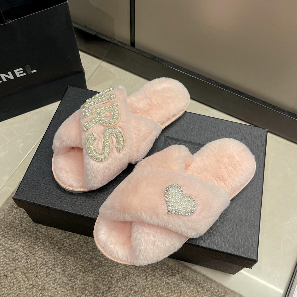Custom Open Toe Bridesmaid for Slippers with Rhinestone and Pearl Light Weight Fluffy Fur and Cozy Cotton Lining EVA Outsole