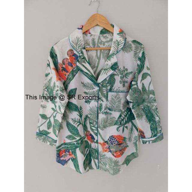 Bridesmaid Women's Thermal Summer Pajamas Set Soft 100% Cotton High Quality Matching Dress Block Printed Night Wear Suits