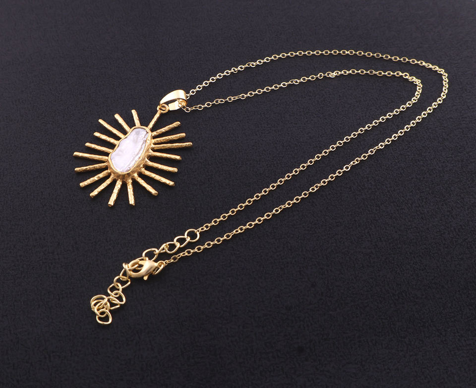 Bridesmaid Jewelry Natural Keshi Pearl Sunrise Pendant Solid Brass 18k Gold Plated Designer Fashion Jewelry Cable Chain Necklace