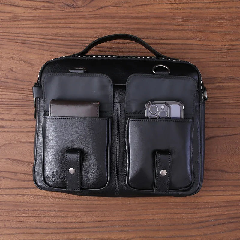 Briefcase Shoulder Messenger Bags Men's Genuine Leather 14-inch Laptop Bag's Men's Briefcase Office Business Handbag