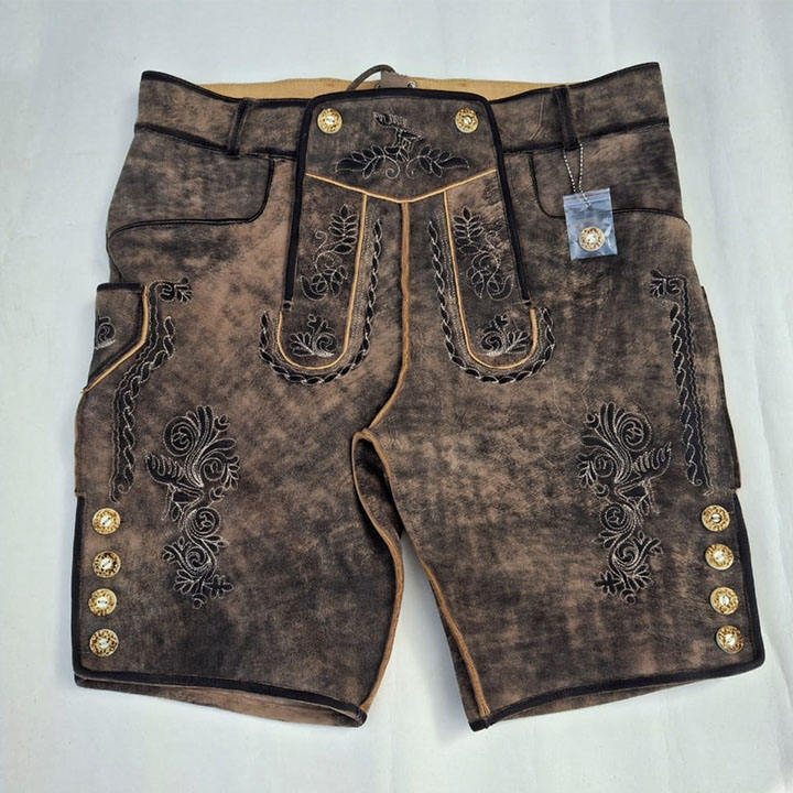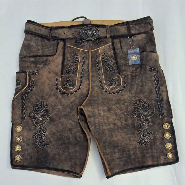 Bright Colors 100% Original Comfortable High Waist Casual Style Button Traditional Bavarian Leather Shorts for Men