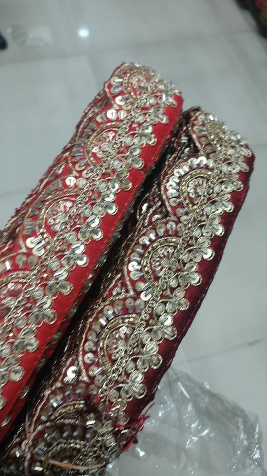 Bright Coloured Sequins Work Embroidered Voile Lace Trim Eco-Friendly Vintage Luxury Multi Color Floral Border Bridal Dress Sari