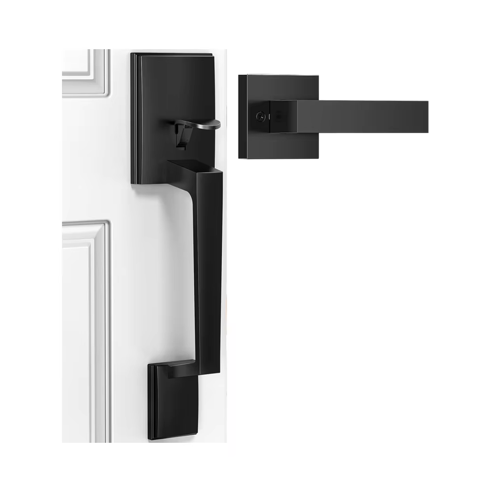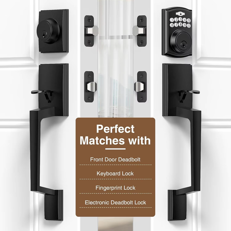 Brightify Black Passage Lever Front Entry Door Handle Modern Exterior Design No Lock Reversible for Left Right Hand Lower Half