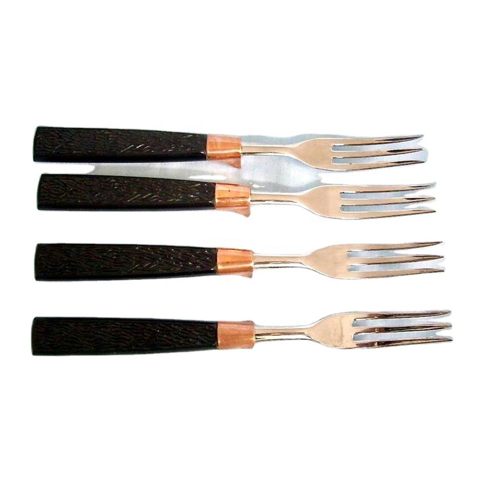 Brilliant Custom Metal Stainless Steel Royal Fork Set Rose Gold Cutlery Black Resin Handle Rose Gold Fork Set