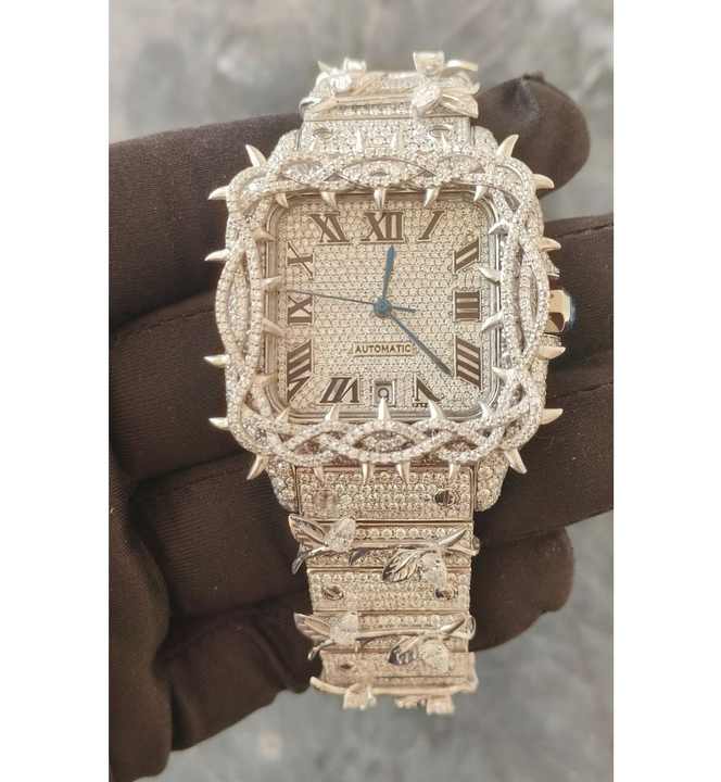 Brilliant Cut VVS1 Square Case Stainless Steel Luxury Antique Hip Hop Business Quartz Watch Glass Jewelry Collection