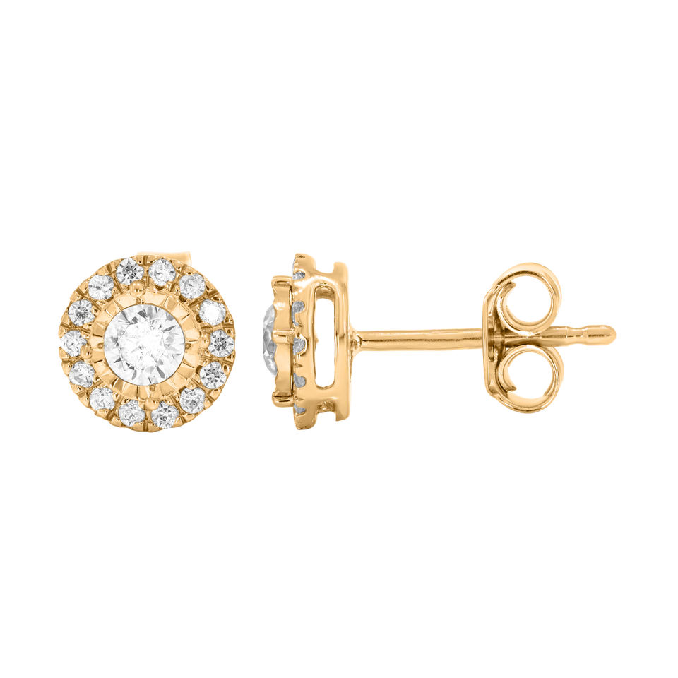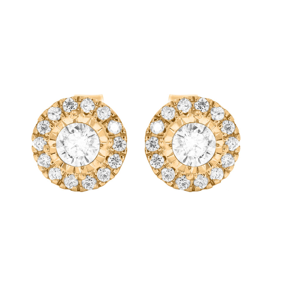 Brilliant Luxury 0.50Ct Lab Grown Diamond Halo Push Back Stud Earrings Solid Gold OEM Wholesale Option