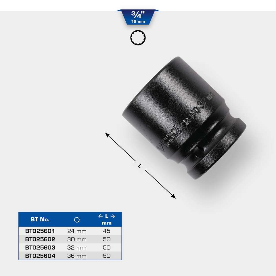 Brilliant Tools 3/4" impact 12-point socket, 30 mm, short
