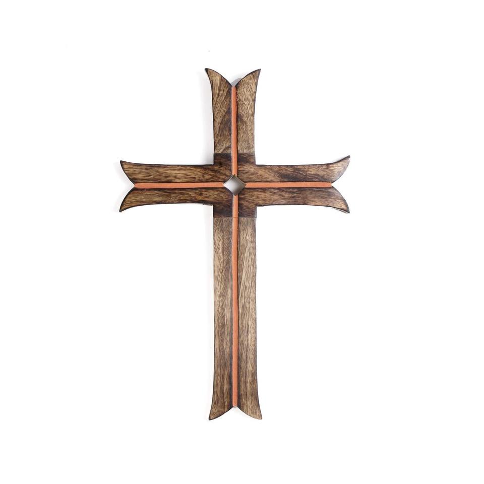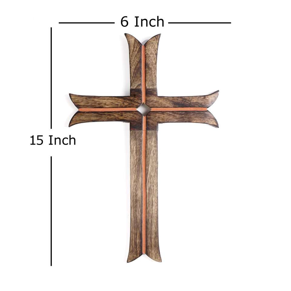 Bring warmth and faith into your home with this Decorative Rustic Brown Wooden Hanging Wall Cross.