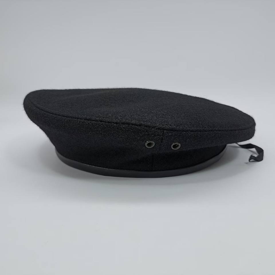 British Berets With Leather Sweatband Adjustable Black Wool Beret Custom Logo Man Embroidered Unisex Wool Beret ronpex