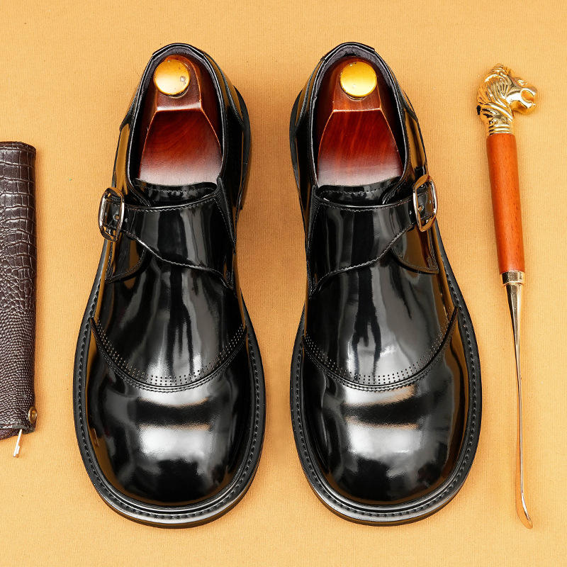British Men's Waterproof Genuine Leather Shoes Oxford Handmade Wedding Formal Business Casual Shoes with Anti-Slip Buckle Straps