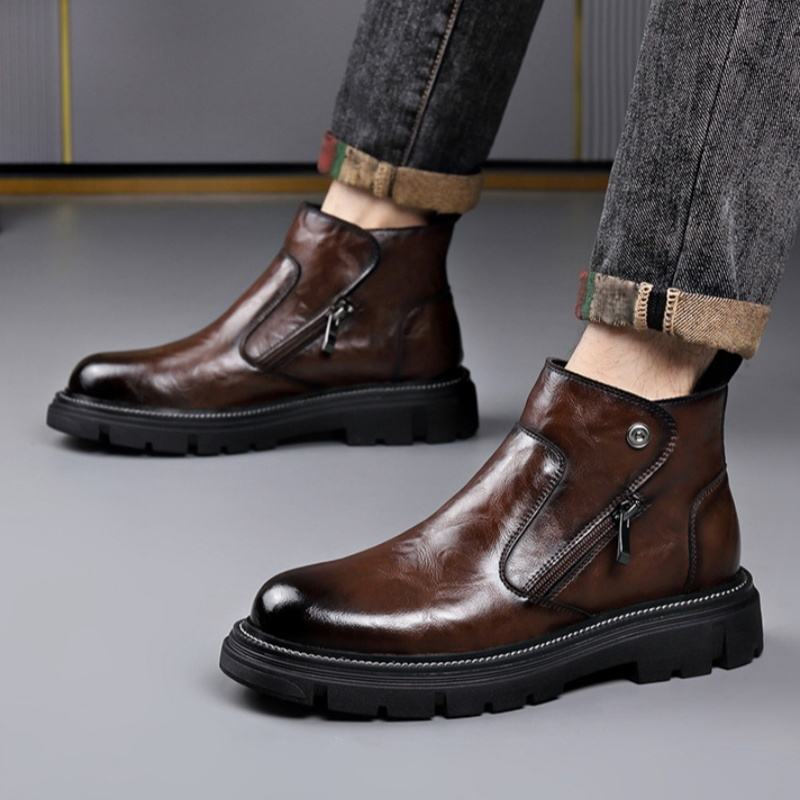 British style winter classic zipper round toe thick height increasing boots fashion versatile men casual plush warm cotton shoes
