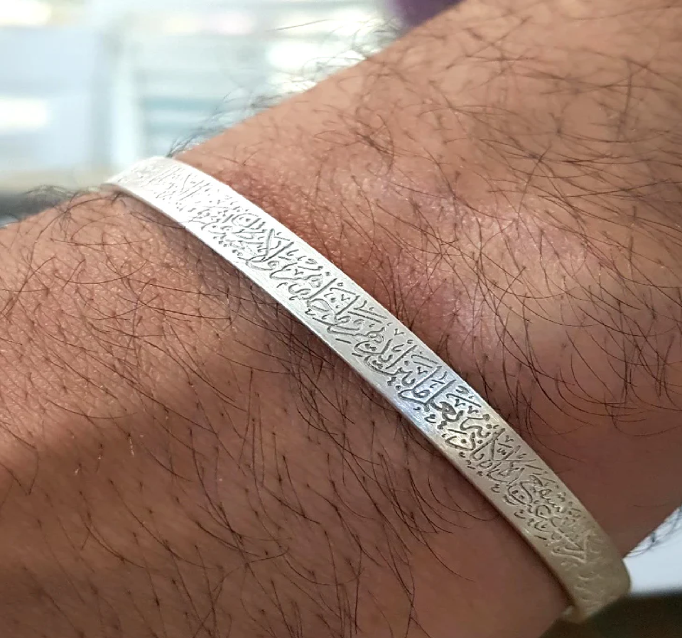 Broad Rusted Vintage Copper, Brass and Stainless Steel Adjustable Ayatul Kursi Cuff Bracelet for Men and Women at Cheaper Prices