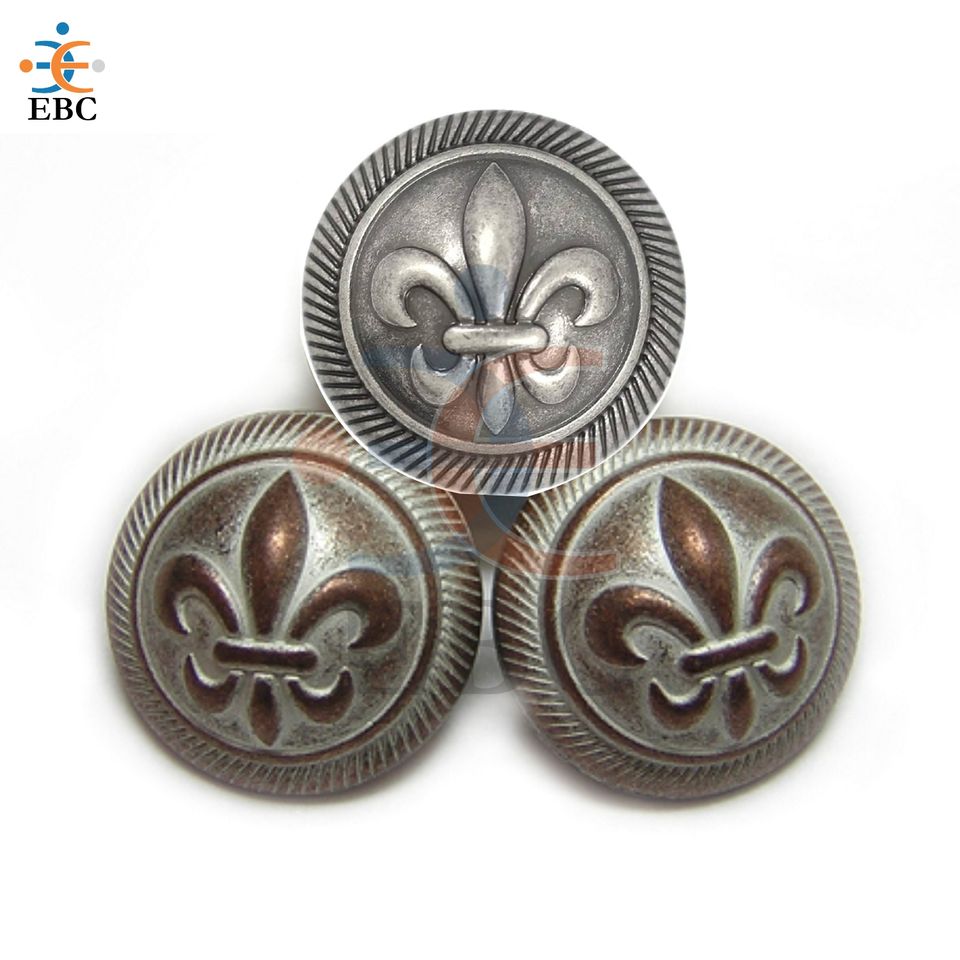 Bronze Fleur De Lys Button Iris Lily Pins Badges Button OEM Embossed Fleur De Lis Metal Shank Buttons for Garments & Clothings
