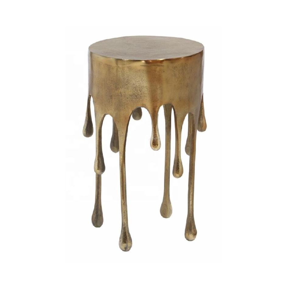 Bronze Metal Side Table with Hammered Texture Black Top for Home Decor Living Room Sofa Bedside Eye-Catching Stool Kitchen Use
