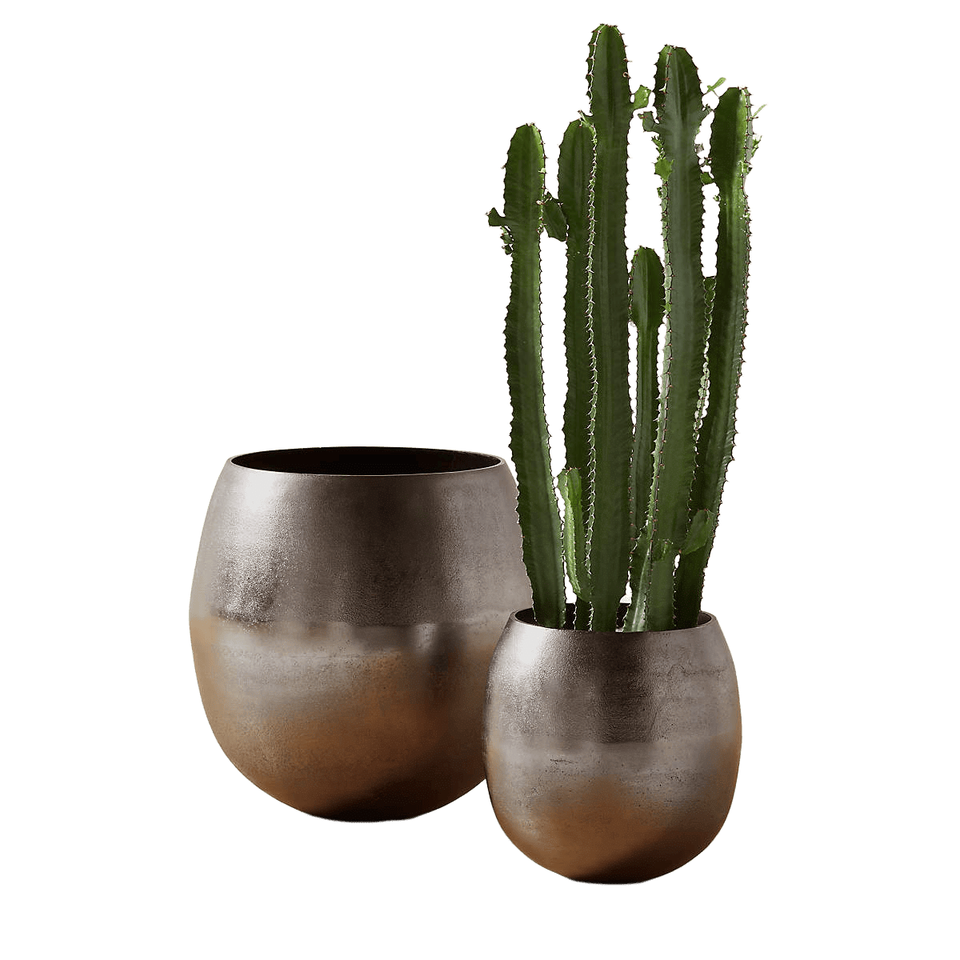 Bronze Pedestal Cylinder Planter Set with Luxury Tall Metal Floor Pots for Modern Home & Office Decor
