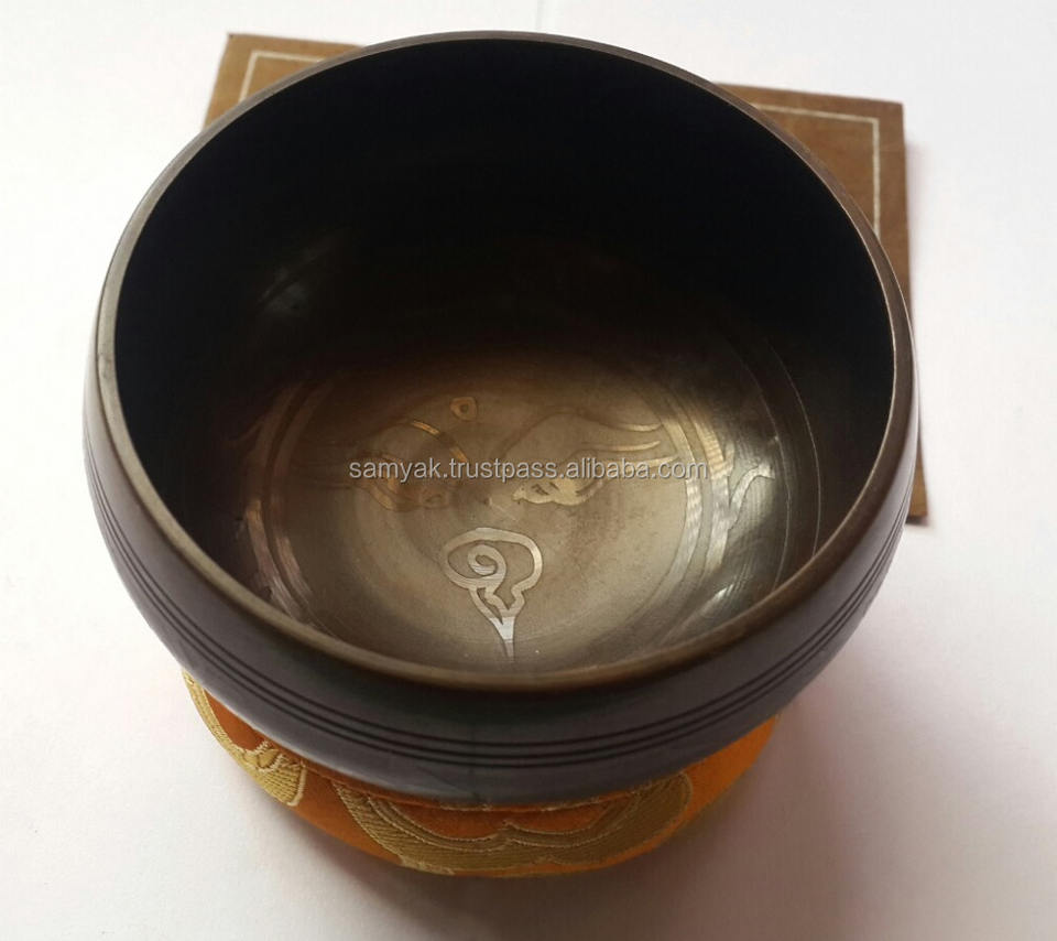 Bronze Tibetan Singing Bowl with Deep Sound Healing Therapy Carved Engraving for Yoga Meditation Mind Controlling Brown Metal