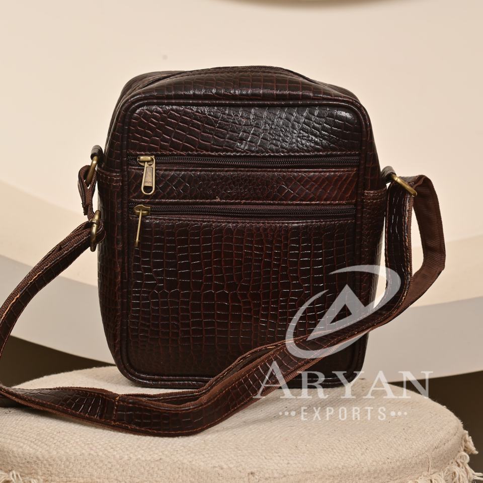 Brown Alligator Pattern Genuine Leather Messenger Bag for Men Retro Man Purse Crossbody Satchel Shoulder Bags for Work Business