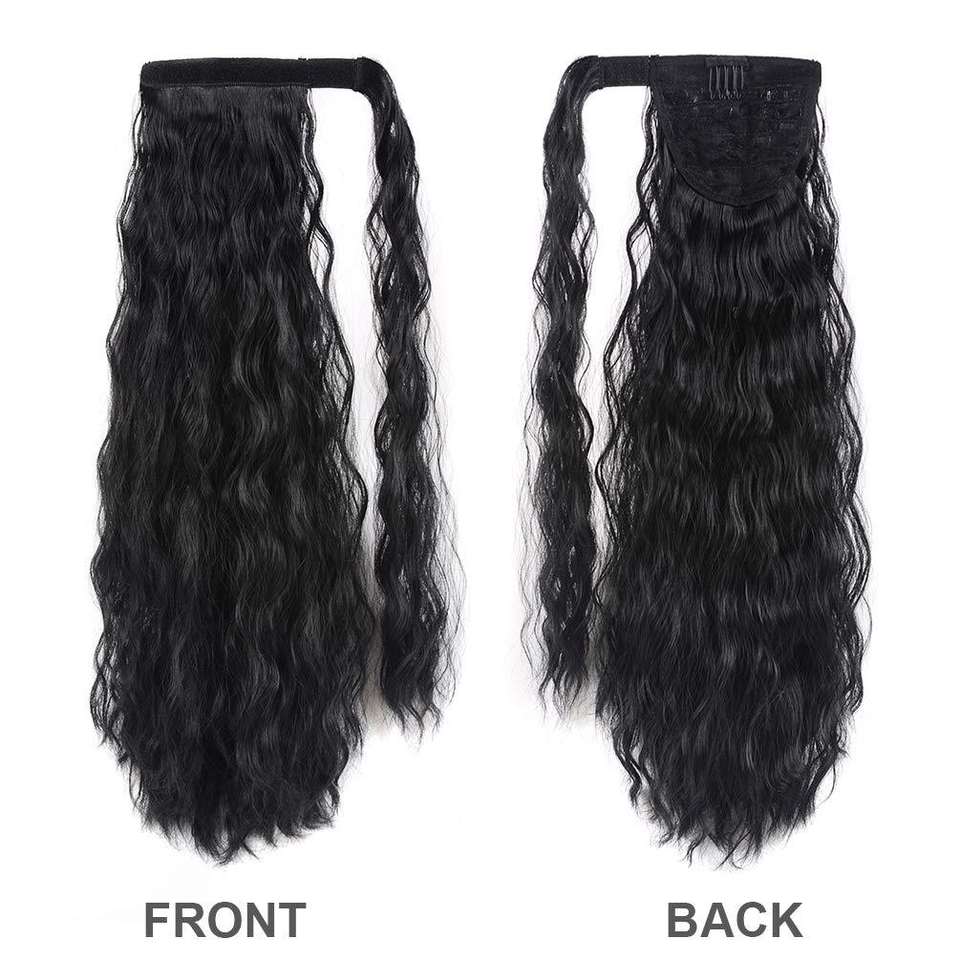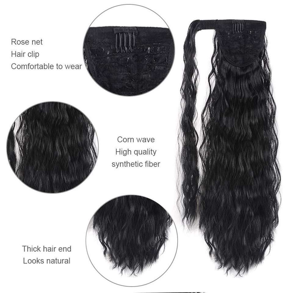 Brown Blonde Faux Hair Extensions Corn Wavy Long Yaki Style Ponytail Hairpiece Stick Wrap-on Clip Hair Wrap