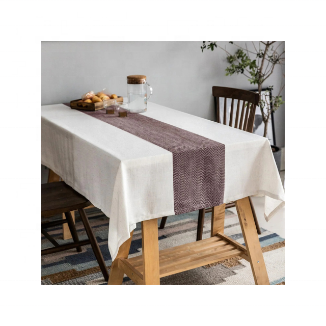 Brown Border Reusable 100% Cotton Embroidered Beige 6ft Tablecloth for Family Gatherings and Home Events Best Selling Tablecloth
