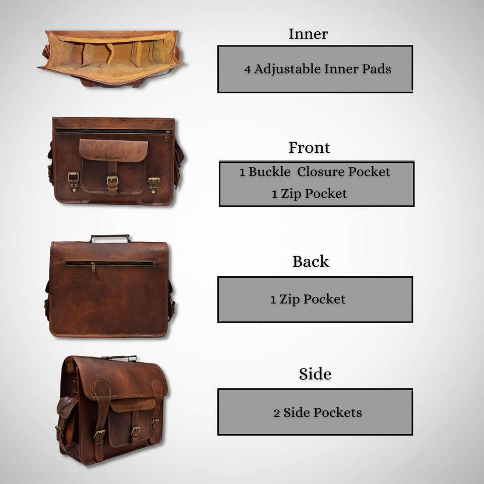 Brown Genuine Leather Carryall Bag Handmade Casual Style for Office Portable Laptop Camera Lens Kit Photography Bulk Product