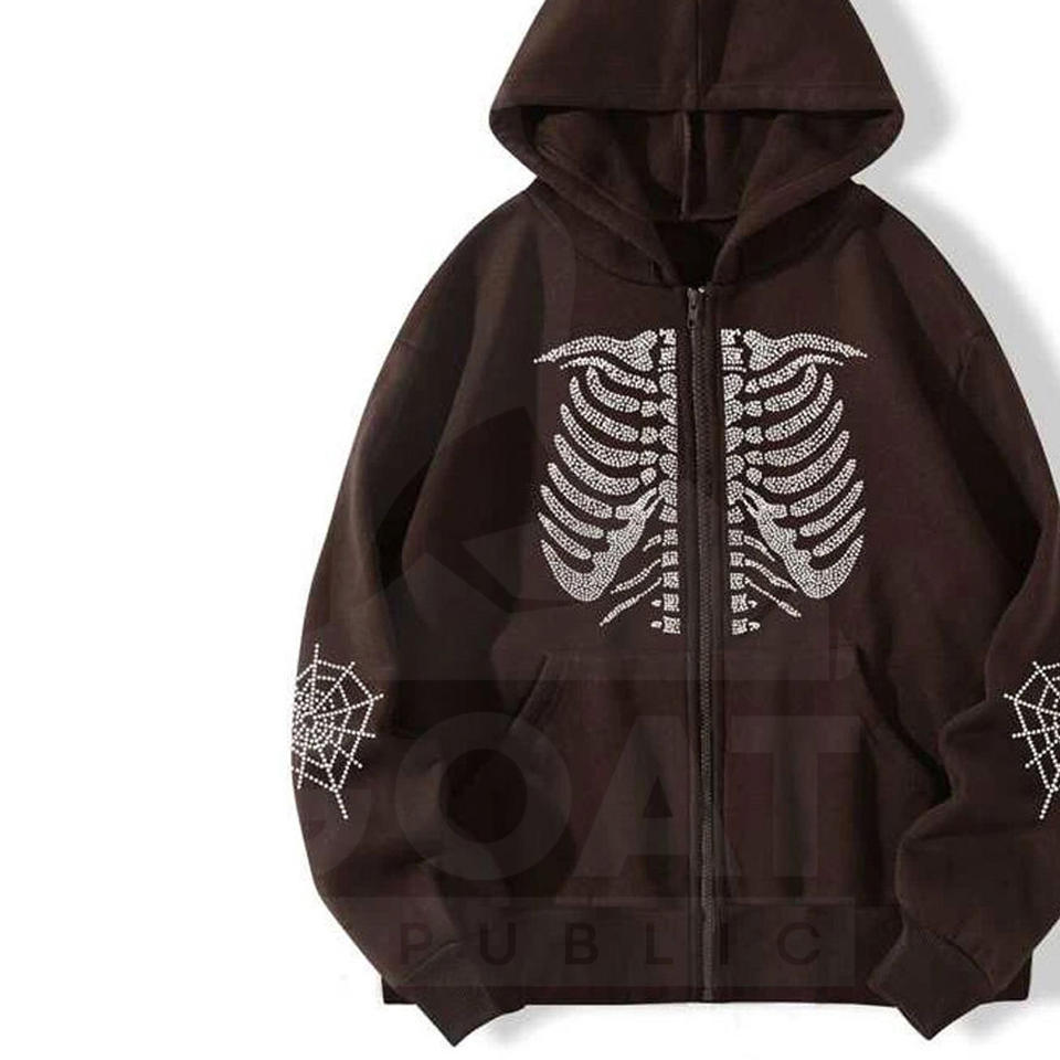 Brown Color Allover Rhinestone 100% Cotton Men's Hoodies Sweatshirts 400 GSM Pullover Heavy Weight Winter Streetwear for Unisex