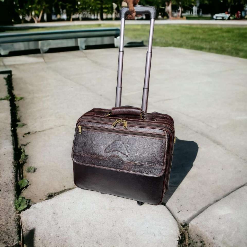 Brown Color Polished Pure Leather Trolley Bag Easy Portable Long Lasting Leather Bag Large Storage Handbag Travelling Bags