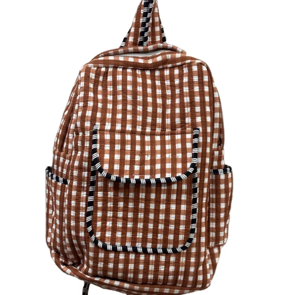 Brown Girls Geometric Pattern Quilted Cotton Anti-Theft Zipper Closure Backpack Handmade Bohemian Hippie Laptop Tote School