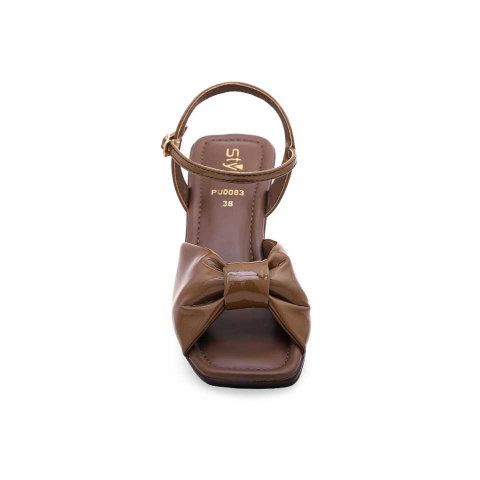 Brown Formal Ankle Strap Sandal with Square Toe Comfortable PU Insole Fashionable Platform for Women for Parties-PU0083