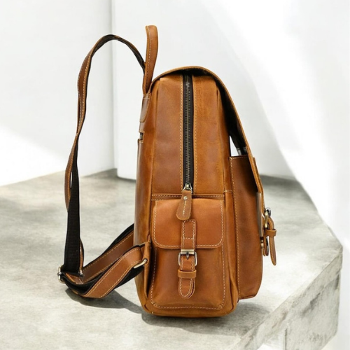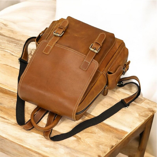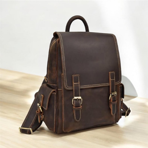 Product name:Brown Genuine Leather Backpack Bag Large Capacity & Dual Buckle