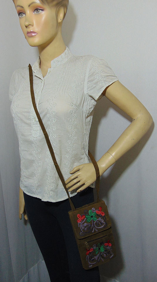 Brown Genuine Leather Handcrafted Shoulder Bag Kashmiri Crewel Embroidery Fashionable College Style Women's Messenger Bags