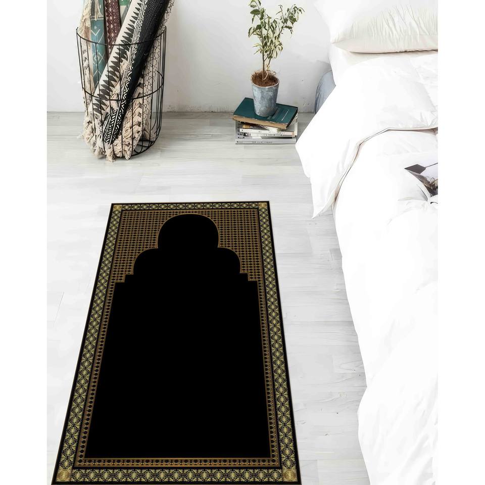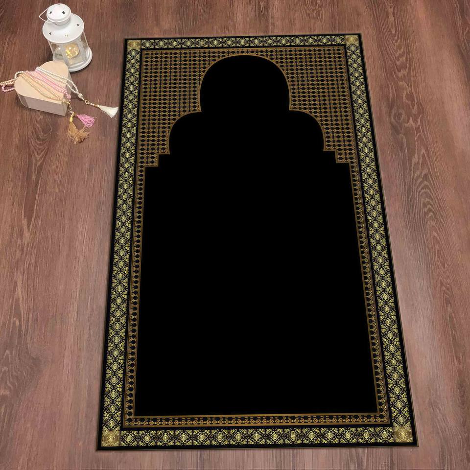 Brown & Gold Prayer Rug: Islamic Worship Mat, Machine Washable,Nonwoven Thin Rug