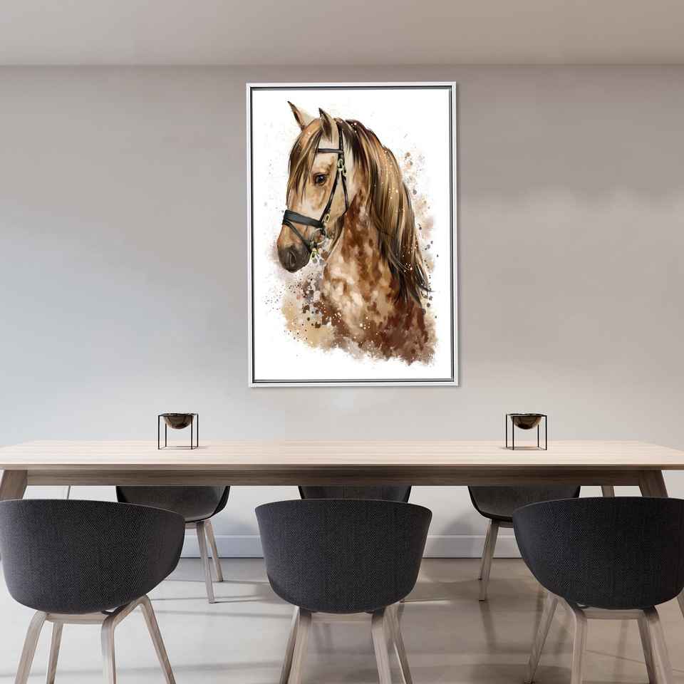 Brown Horse Art Canvas: Printed Coastal Wall Art for Office & Home,White Framed