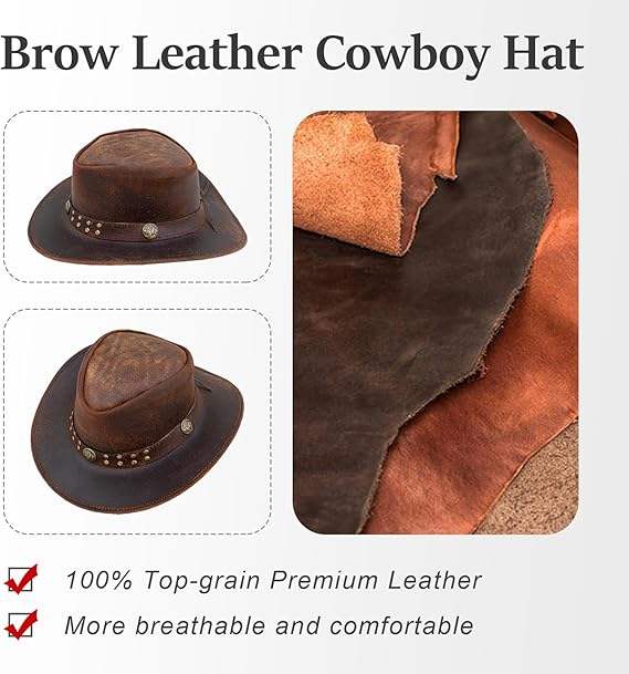 Brown Leather Cowboy Western Hat for Men Woman Studded Steampunk Hat Deadman Top Hat for Halloween Costume