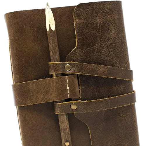 Product name:Brown Leather Journal Antique Paper with Wooden Pencil Closure