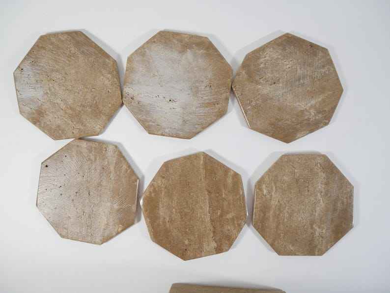 Brown Marble Coasters Vintage Style Heavy Natural Stone Coaster Set With Holder
