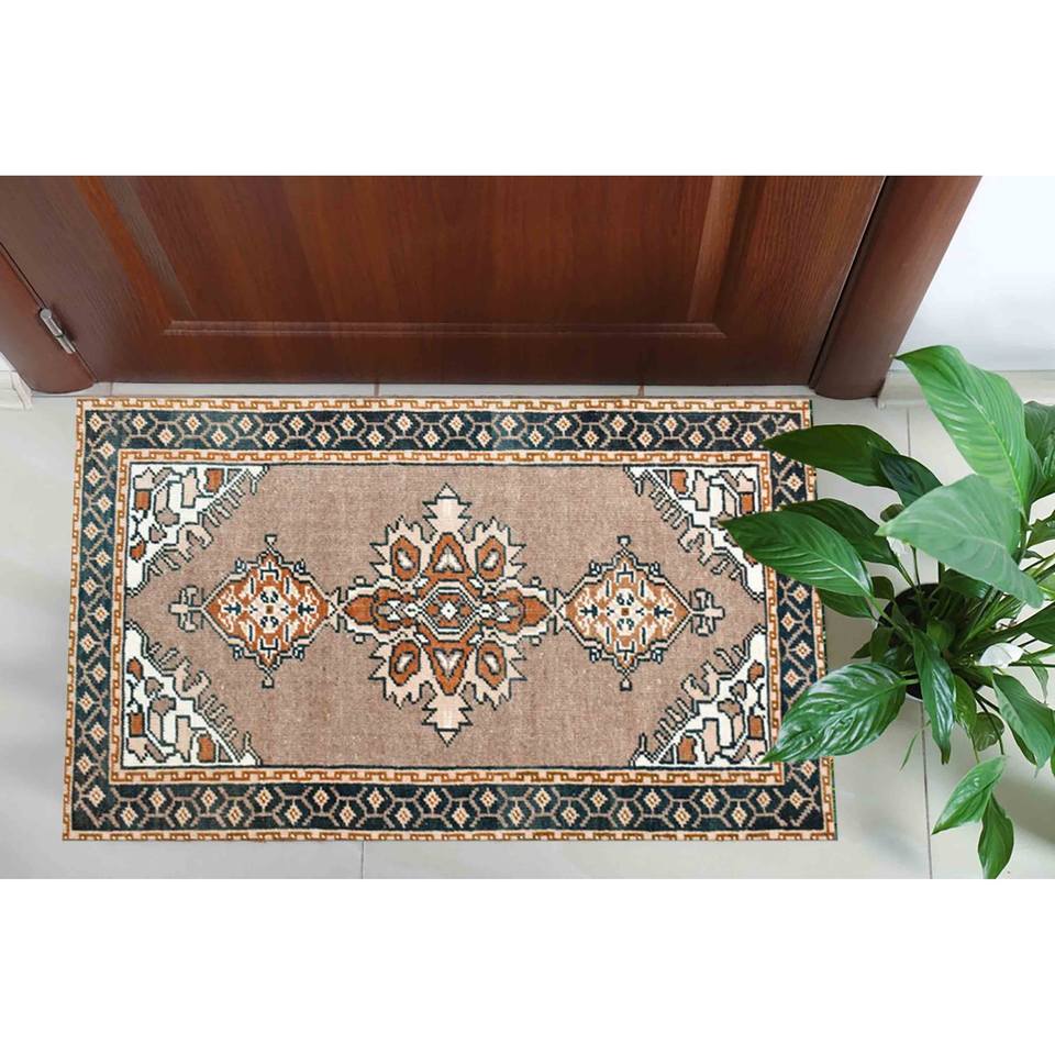 Brown Medallion Ethnic Pattern Persian Design Printed Rug,With Pile Soft Rug