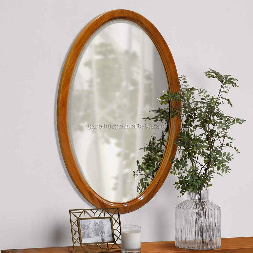 Brown Oval Teak Wood Wall Mirror