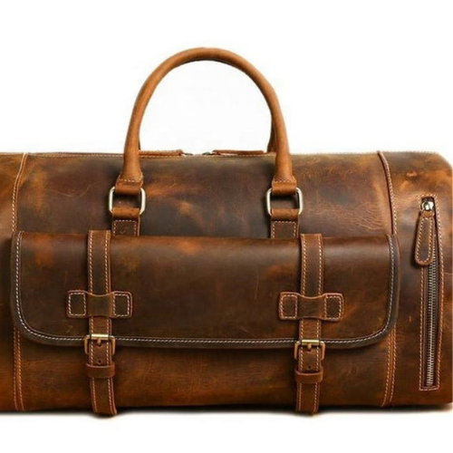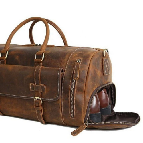 Brown Premium Genuine Leather Travel Duffel Bag with Shoe Compartment