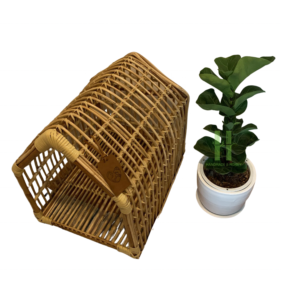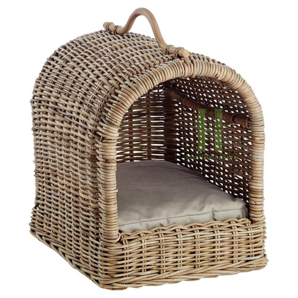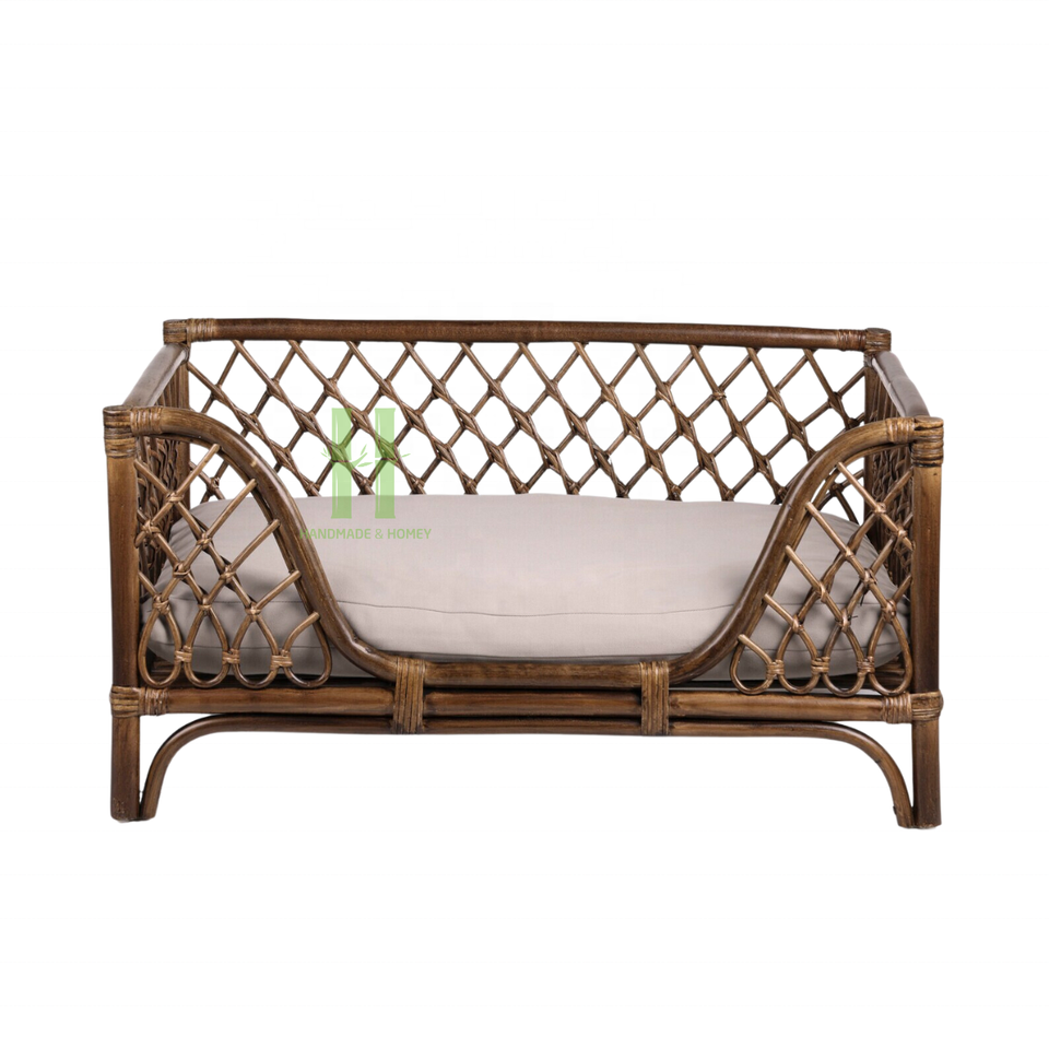 Brown Rectangle Dog Bed Rustic Rattan Dog Bed with Cushion Variety of Color and Design with Durable Package from Vietnam