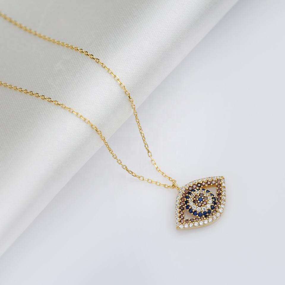 Brown Sapphire CZ Stone Eye Necklace Pendant Turkish Wholesale Handcrafted 925 Sterling Silver Jewelry Trendy for Women