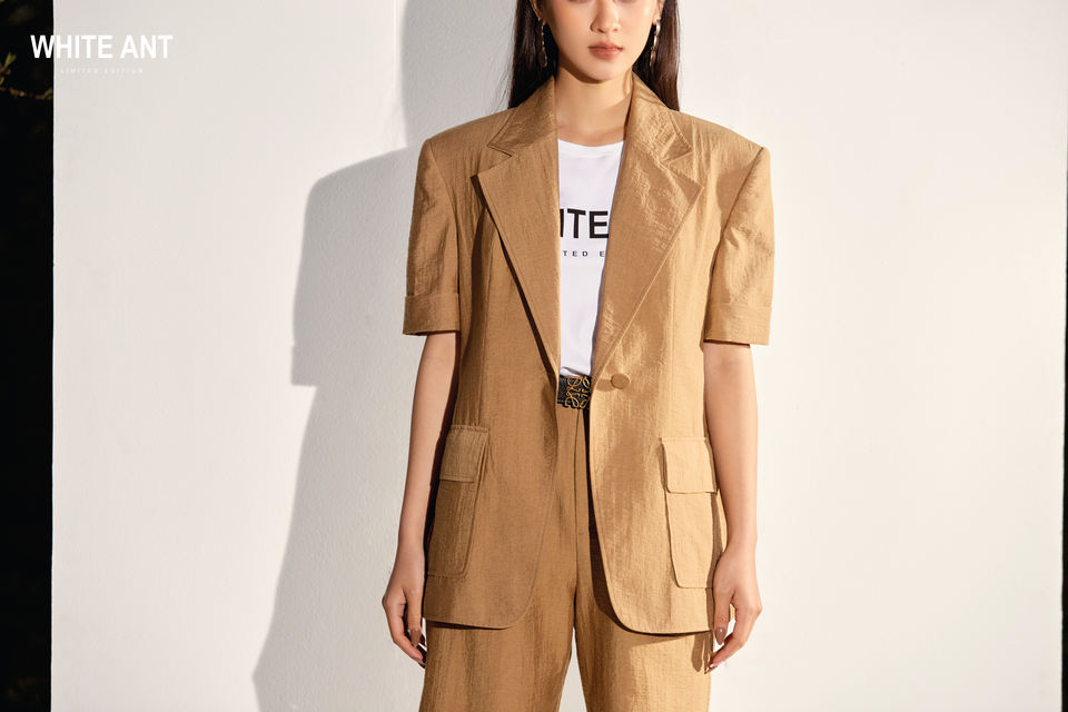 More details:Oversized collar, box pleats, four patch pockets button with flaps.