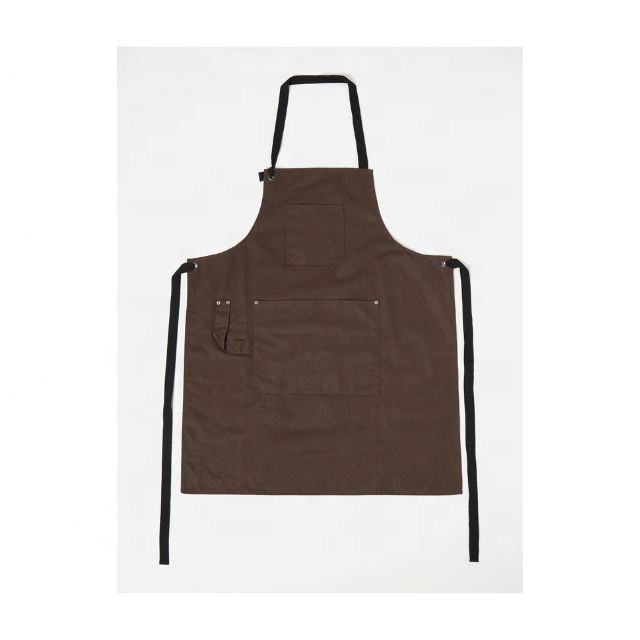 Brown Strapped Custom Logo Printed 100% Cotton Women's Kitchen Apron Kit for Home Cooking Baking Cleaning with Waist Pinafore