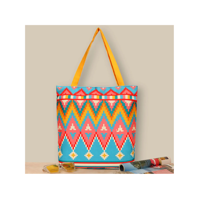 Brown Stylish Handmade 100% Cotton Indian Embroidered Shopping Bag Large Capacity Quick Dry Sustainable Lightweight Recyclable