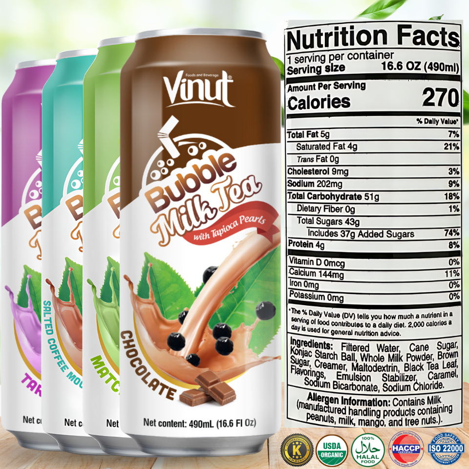 Brown Sugar Bubble Milk Tea Drink 490ml VINUT Manufacture No GMO/ Lactoser Free Sample Private Label Wholesale Price OEM ODM