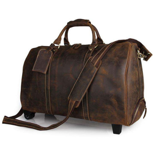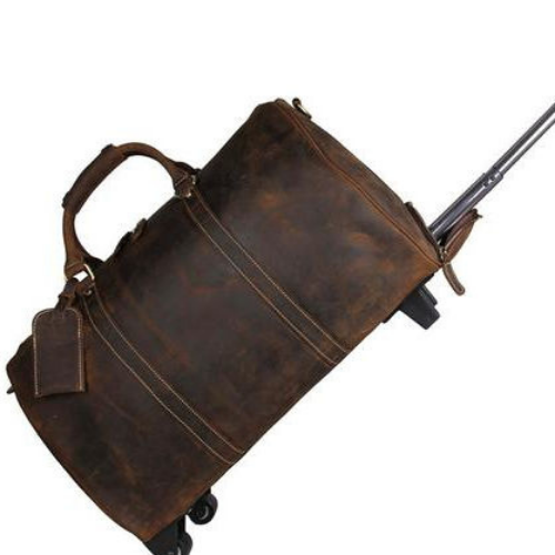 Product name:Brown Vintage Handmade Genuine Leather Trolley Duffel Bag