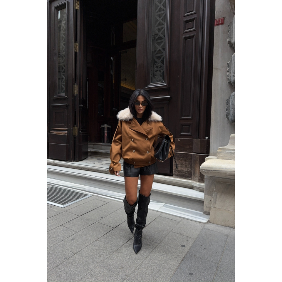 Brown Vintage Women's Trench Coat Fur Collar Double-Breasted Long Length Winter Autumn Suitable Cotton Wool Filling Lace Print