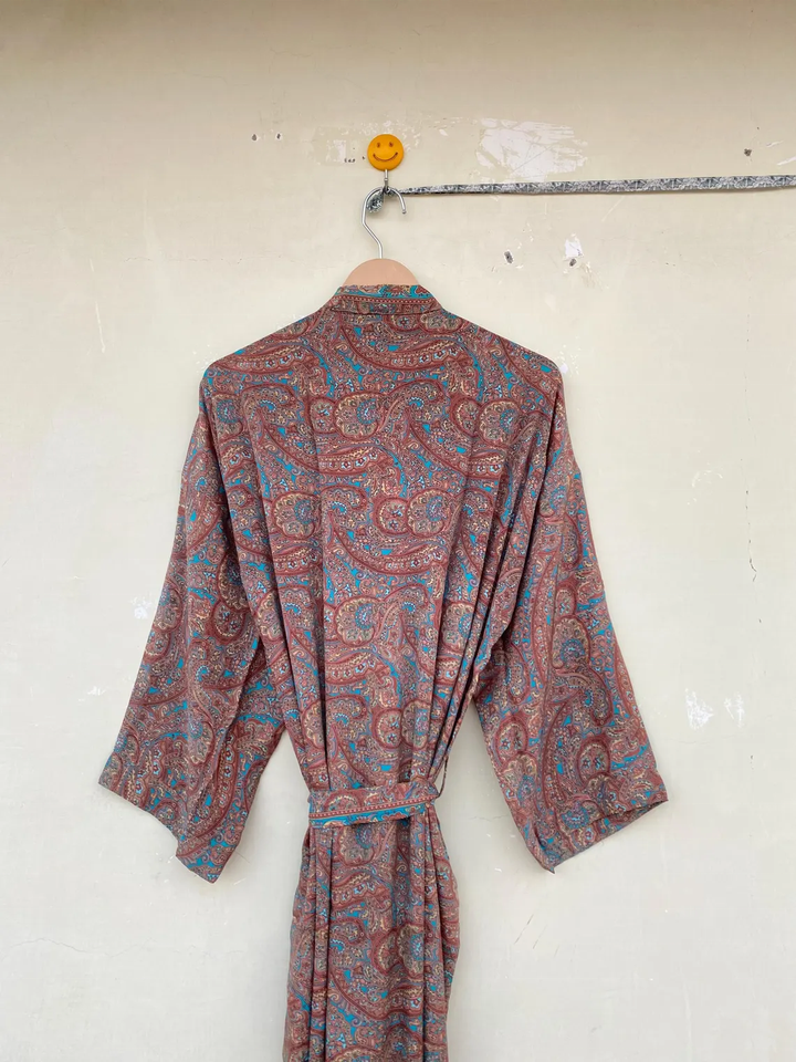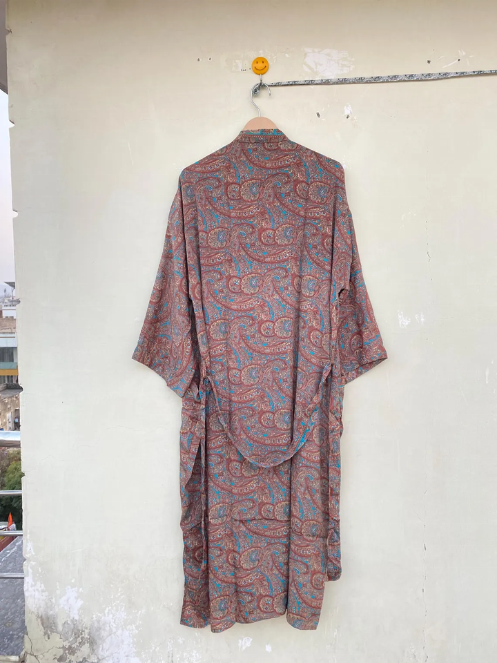Brown Women Recycled Long Silk Kimono Exclusive Recycled Silk Kimono Elegant Robe